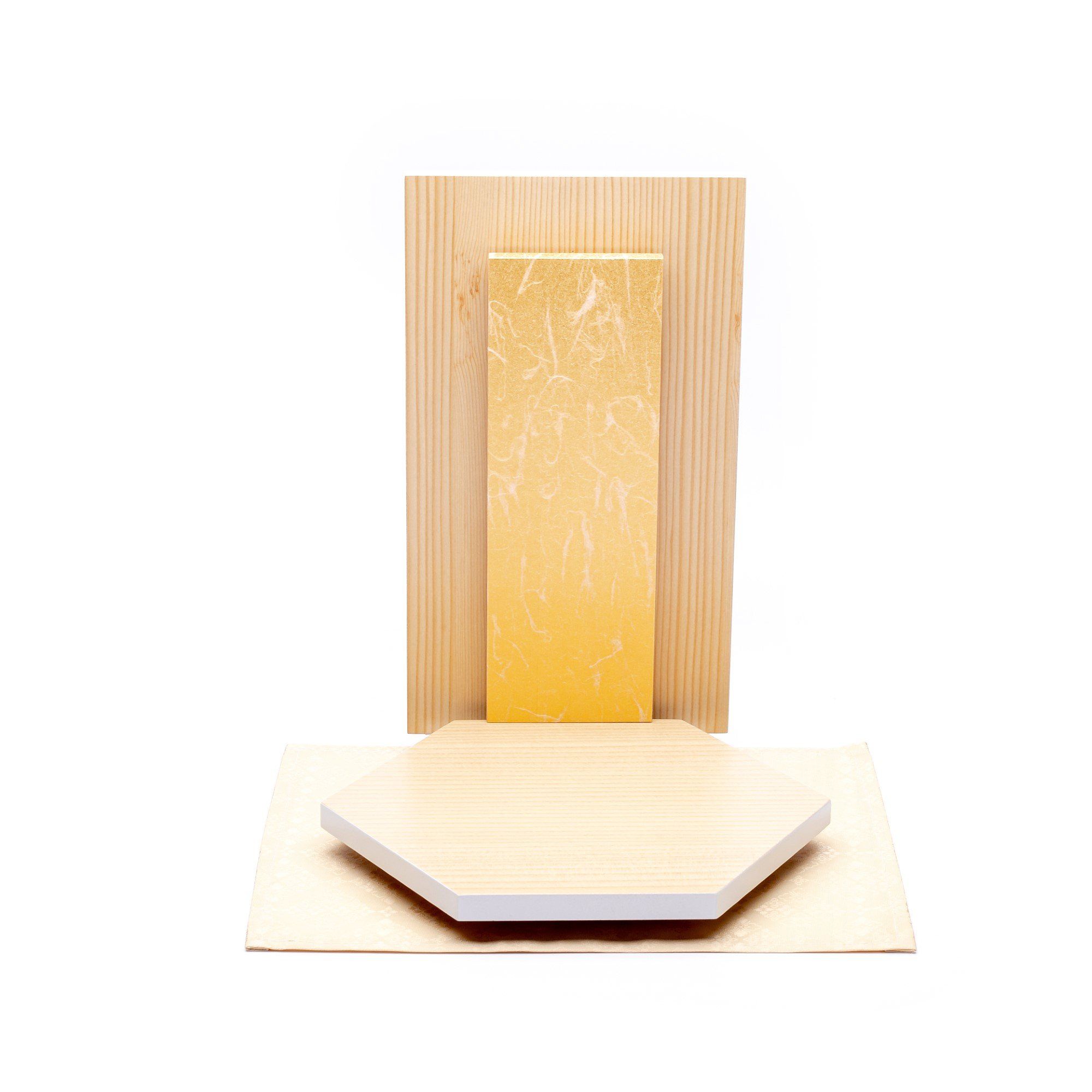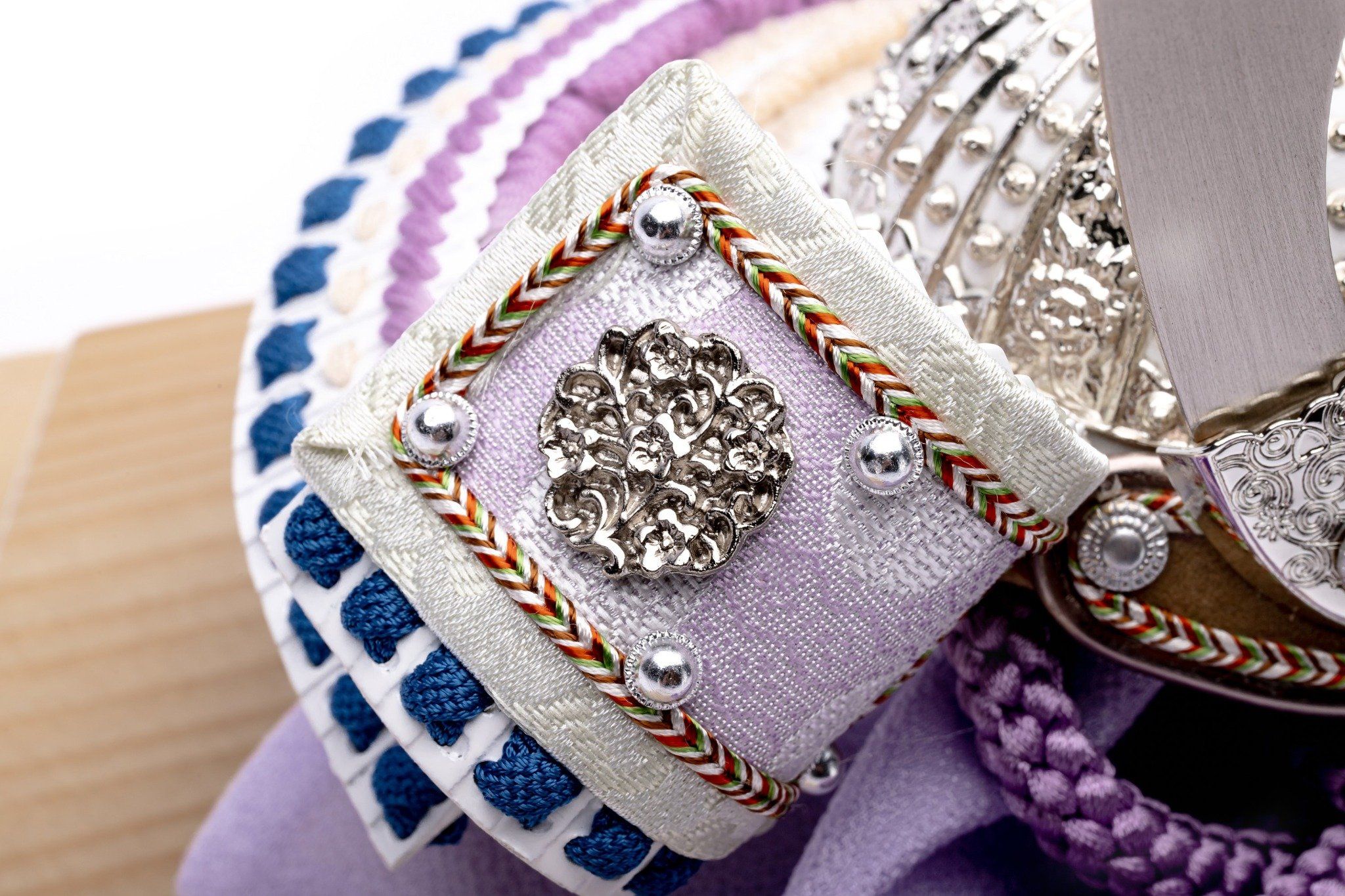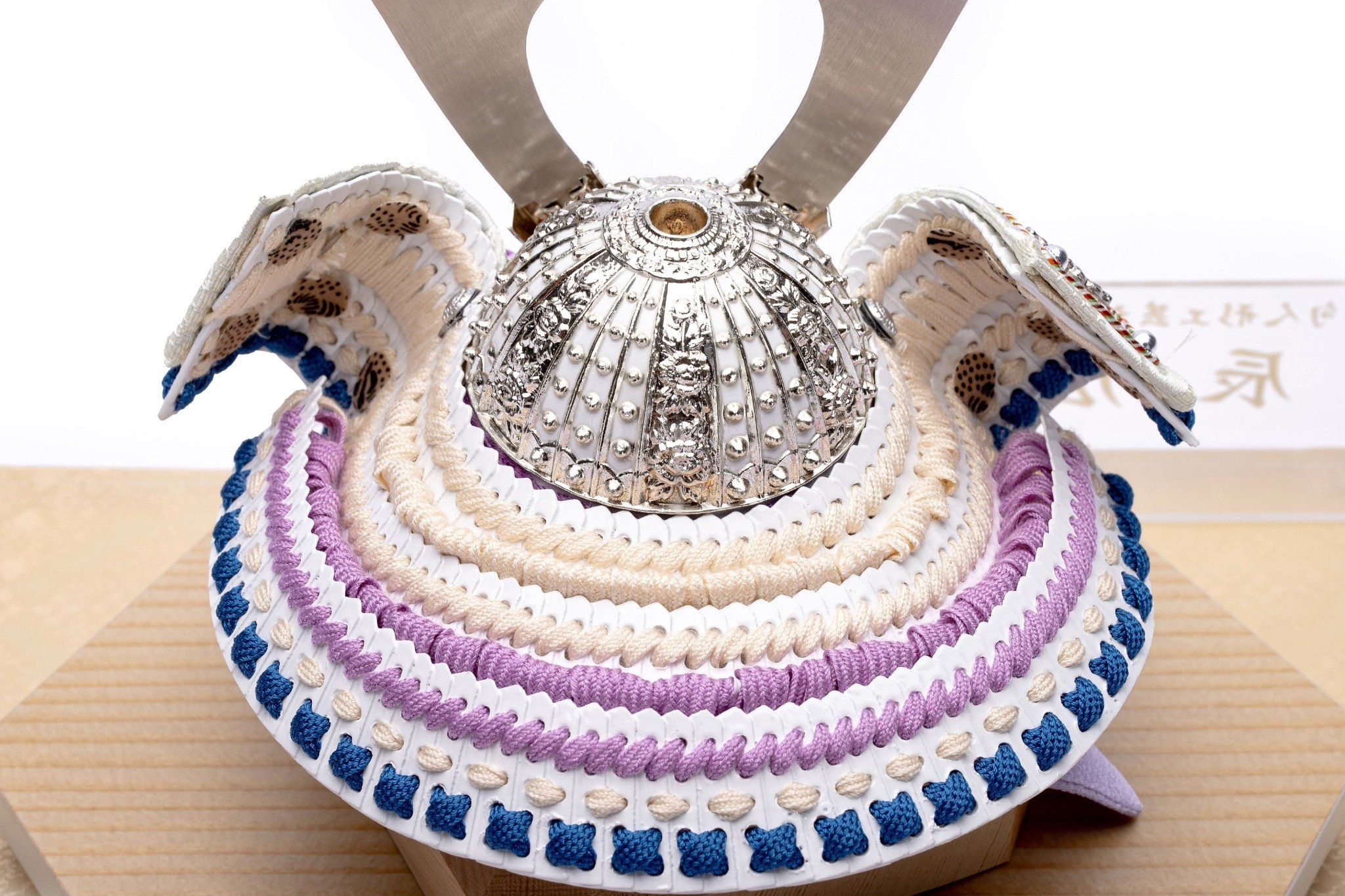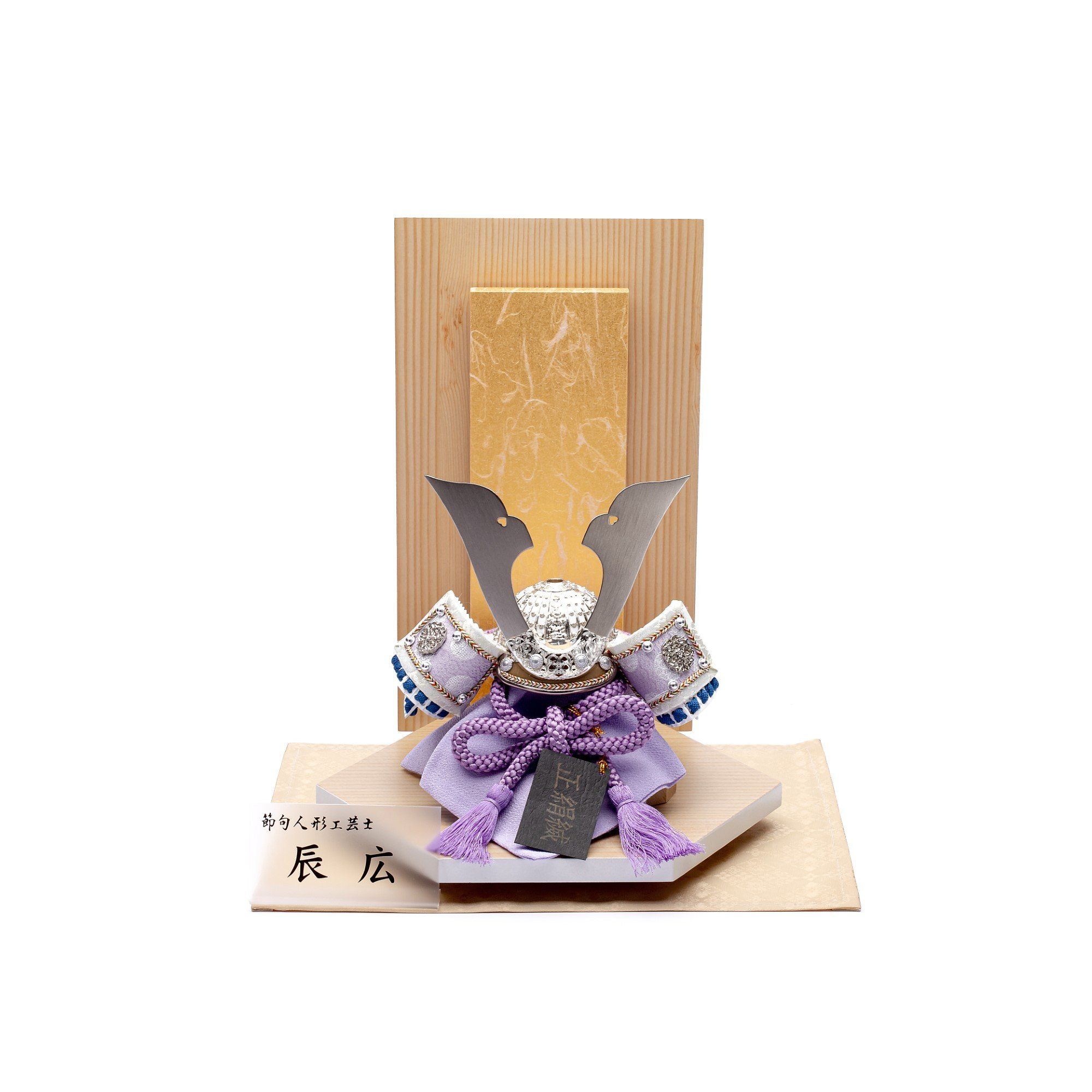 Bộ mũ Samurai màu tím. Bức bình phong làm từ gỗ và không có họa tiết. Sản phẩm được đặt trên đế gỗ kèm theo khăn lót và bảng ghi tên tác giả.