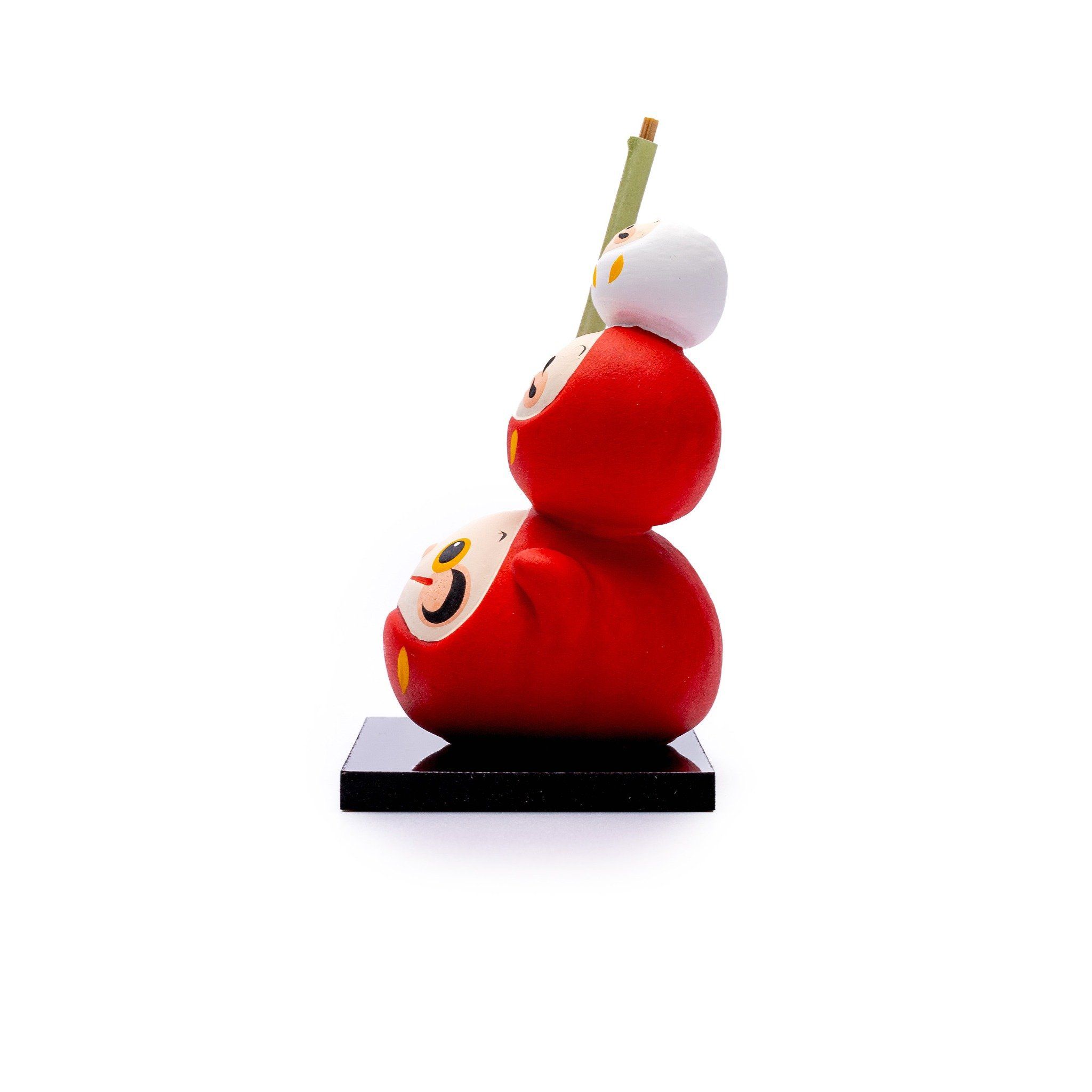 Màu sắc: Chủ đạo là màu đỏ – biểu tượng của may mắn, sức khỏe và năng lượng dồi dào. Kết hợp với Daruma màu trắng nhỏ ở trên cùng, tạo nên điểm nhấn hài hòa.