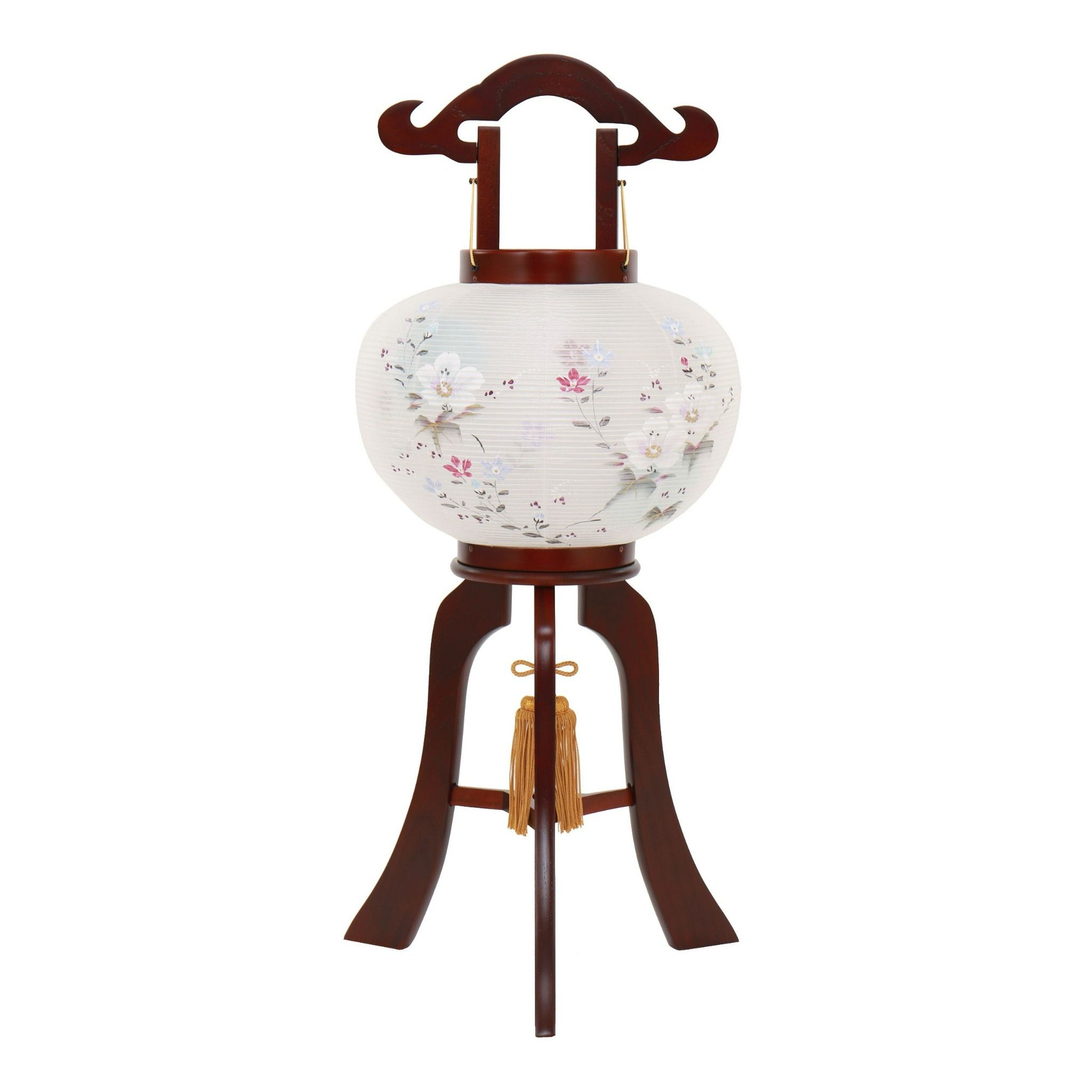 Chiếc đèn lồng có dáng hình tròn đứng, được đặt trên đế gỗ làm thủ công bằng gỗ tự nhiên. Chất liệu của thân sản phẩm là giấy Washi (được làm bằng cách liên kết nhựa và giấy), được trang trí họa tiết Hoa Campanula. Bên trong là nến LED hoạt động bằng pin (sử dụng 2 pin AA ). Thời gian sáng liên tục khoảng 60 giờ.