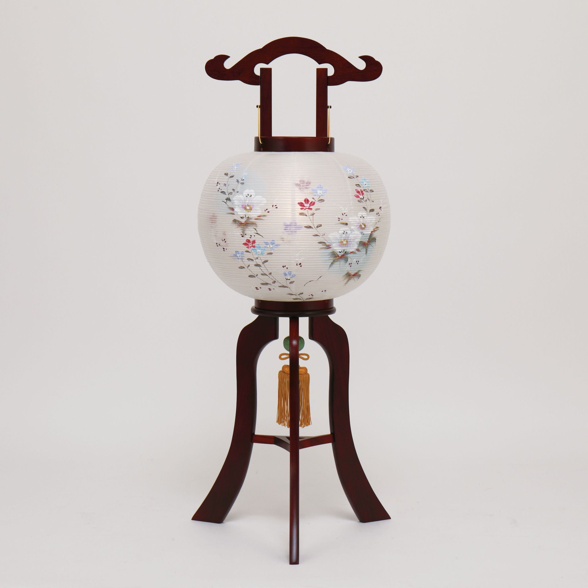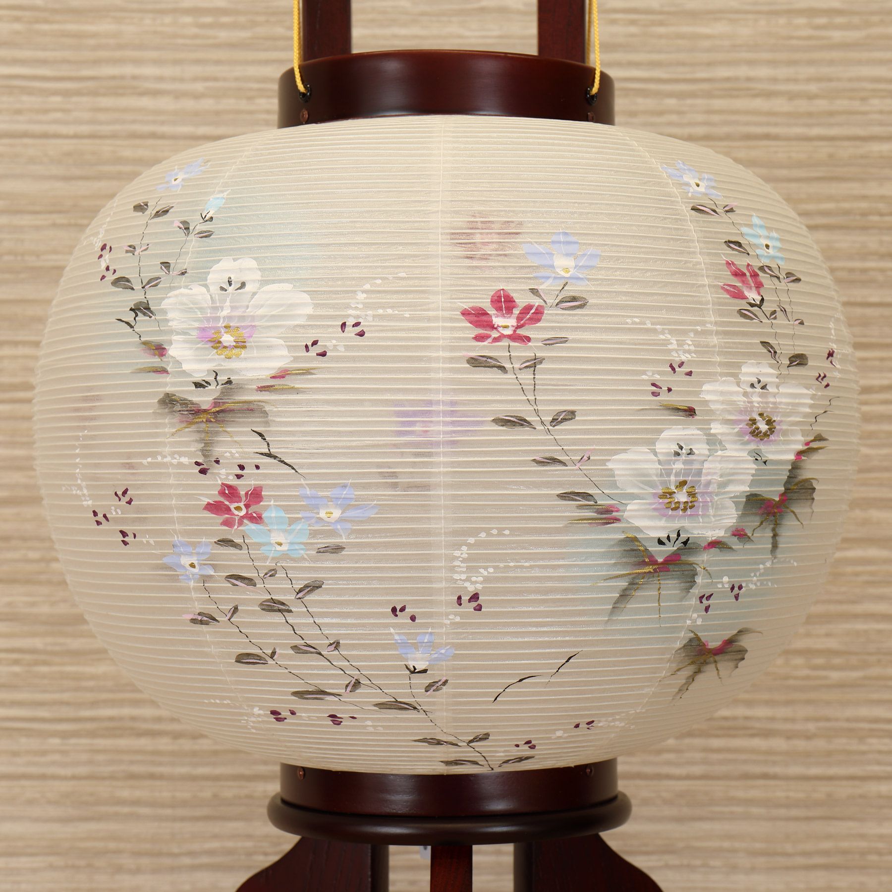 Chiếc đèn lồng có dáng hình tròn đứng, được đặt trên đế gỗ làm thủ công bằng gỗ tự nhiên. Chất liệu của thân sản phẩm là giấy Washi (được làm bằng cách liên kết nhựa và giấy), được trang trí họa tiết Hoa Campanula. Bên trong là nến LED hoạt động bằng pin (sử dụng 2 pin AA ). Thời gian sáng liên tục khoảng 60 giờ.