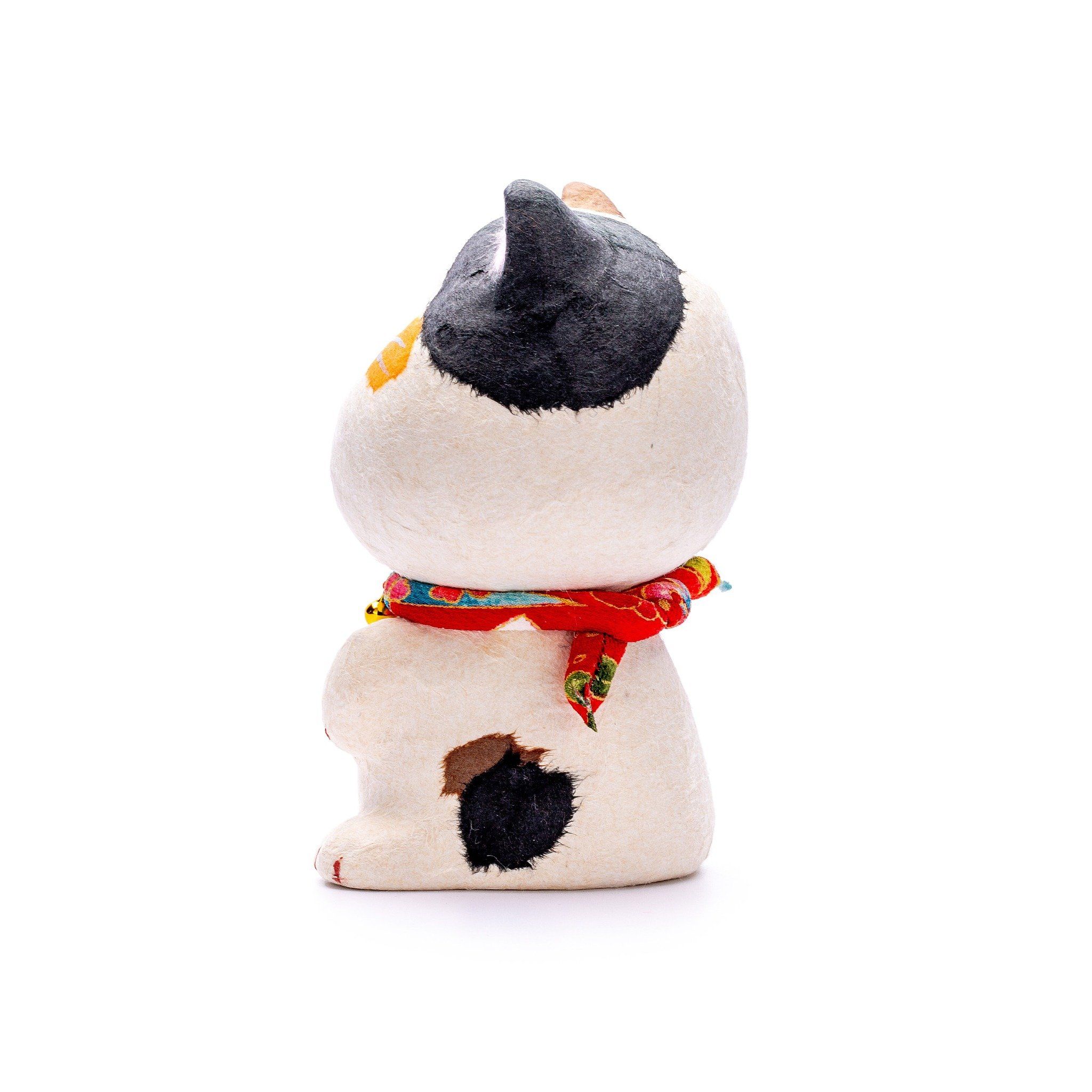 Có nhiều truyền thuyết khác nhau về nguồn gốc của mèo may mắn. Một trong những câu chuyện nổi tiếng nhất kể về một samurai bị mắc mưa bên dưới gốc cây cổ thụ. Khi đang tìm nơi trú ẩn, ông nhìn thấy một chú mèo đang vẫy tay mời ông vào ngôi đền gần đó. Ngay sau đó, một tia sét đánh trúng chính xác vào vị trí ông đứng ban đầu. Từ đó, người ta tin rằng mèo vẫy tay mang lại may mắn và bảo vệ cho con người.