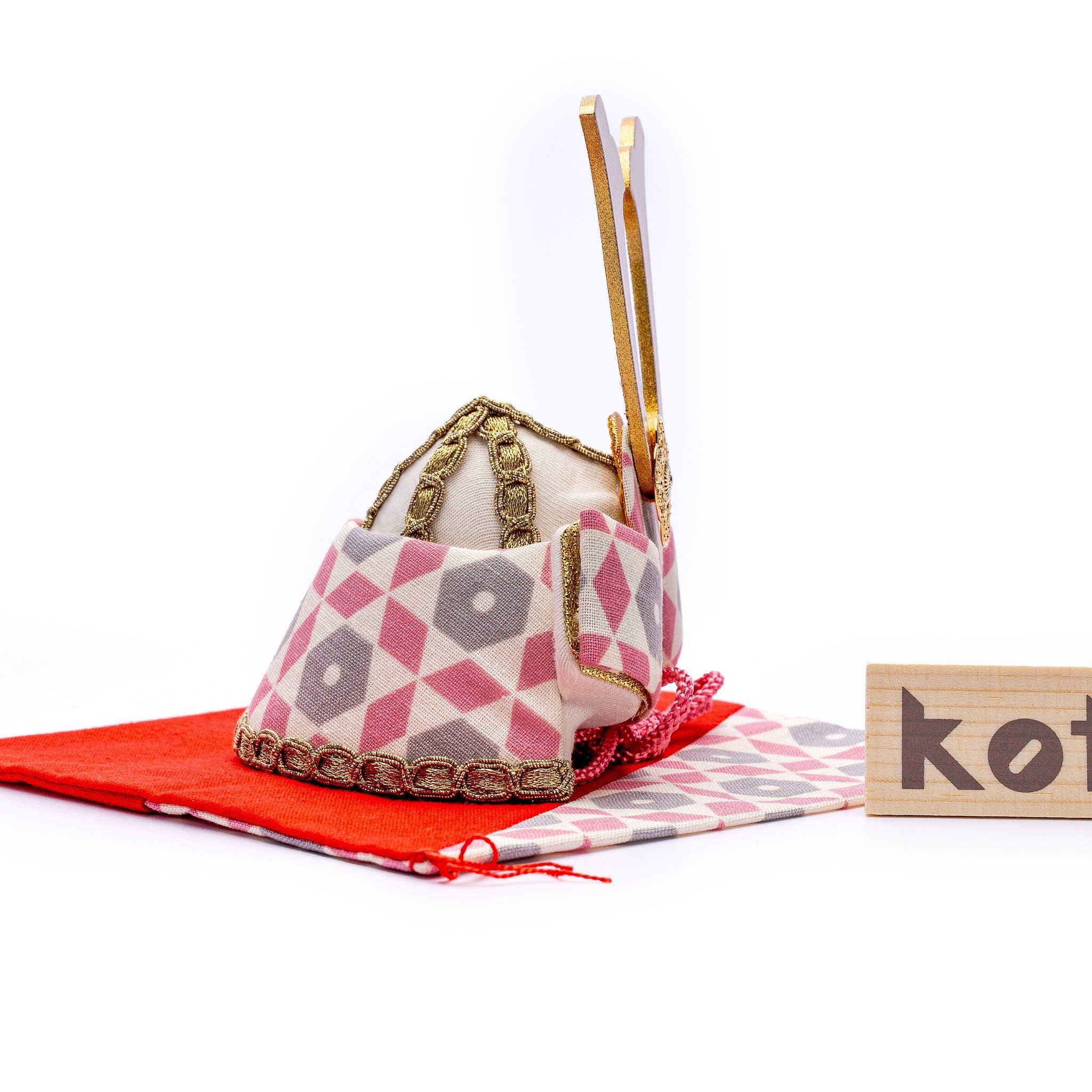 Sản phẩm mũ Samurai phiên bản thu nhỏ, được đặt trên đệm cùng bảng tên vừa vặn để trang trí cho ngôi nhà của bạn mà không tốn quá nhiều không gian nhưng vẫn rất bắt mắt với các họa tiết hình học xinh xắn, hiện đại. Món quà này cũng giống như một lời chúc sức khỏe và bình an cho người được tặng.