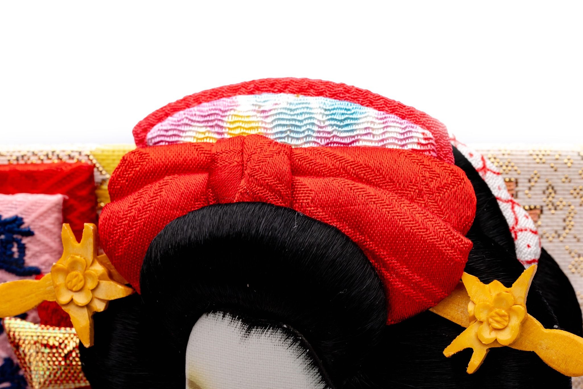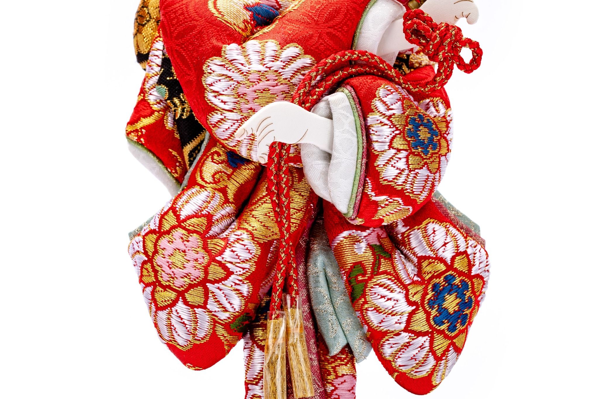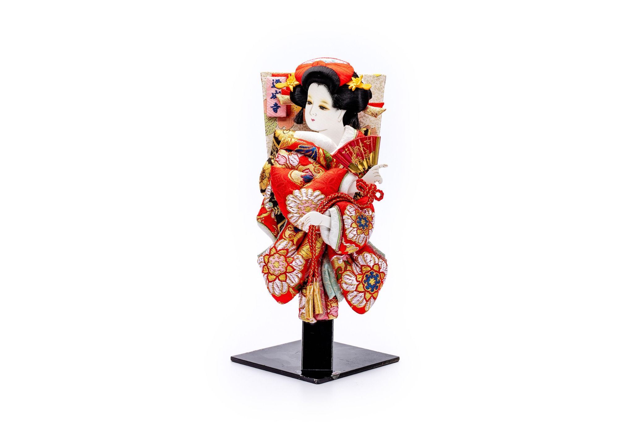Đây là một tấm bảng lông mềm tuyệt đẹp và dễ thương với trang phục xoắn. "Dojoji" là một vở kịch nổi tiếng trong kabuki và múa Nhật Bản. Dưới bóng hoa anh đào nở rộ, cảnh Hanako nhảy múa với quạt rất tuyệt vời và tràn đầy nét duyên dáng. Quạt này được ưa chuộng như một vật may mắn cho các bé gái vào dịp Tết. Kinran được sử dụng cho trang phục Nhật Bản và có đặc điểm là cấu trúc nhỏ gọn của nó và cũng là chất liệu chủ yếu để làm nên một bức Oshie.